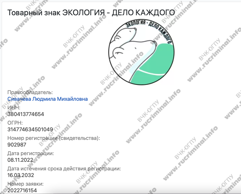 А вот ещё один бизнес-партнёр главы Росприроднадзора: бывшая телеведущая «Вести-Иркутск», экс-помощник губернатора Иркусткой области, тренер личностного роста Людмила Сивачева. На сайтах-агрегаторах в качестве ключевых моментов работы она указывает «индивидуальное консультирование высокопоставленных лиц». Именно на неё оформлен товарный знак «Экология — дело каждого». Одноименную Международную детско-юношескую премии Росприроднадзора ежегодно с 2021 года вручает Светлана Радионова. У оргкомитета премии есть свои сотрудники и даже пресс-служба в составе Росприроднадзора. Как выясняется, г-жа Сивачева настолько хорошо знакома с Радионовой, что личная помощница главы Росприроднадзора покупала авиабилеты и для Сивачевой.